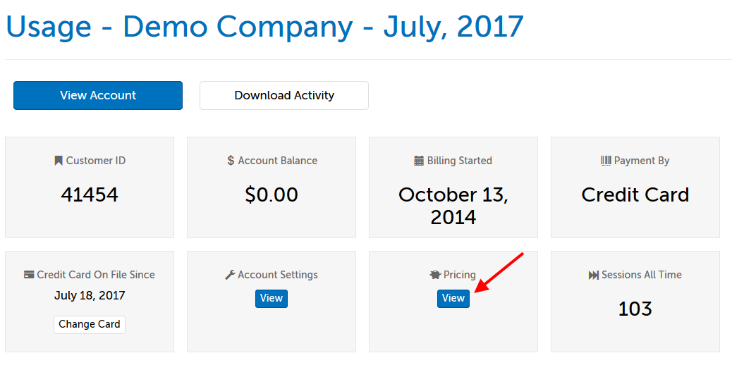 2. Click on the"View" button in the Pricing box.