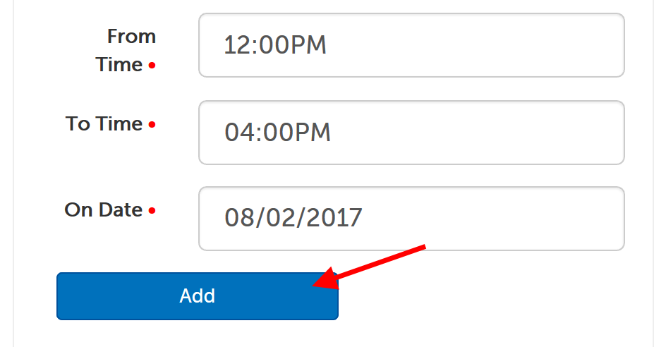 9. Click "Add" to add the out of office slots to your calendar. They will appear on the calendar in red and prevent any overlapping appointment slots from being viewable to users.
