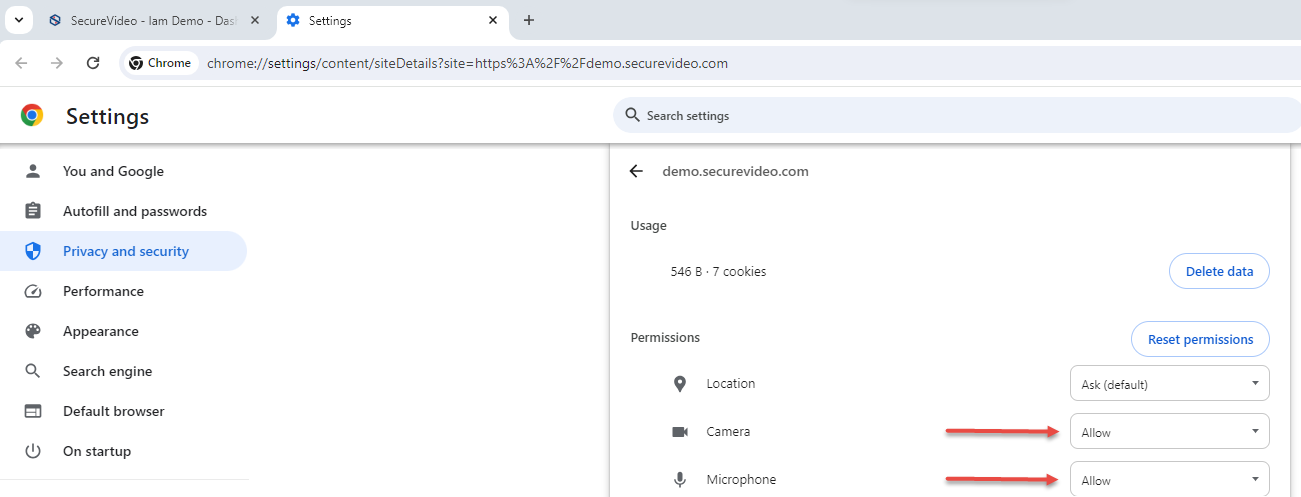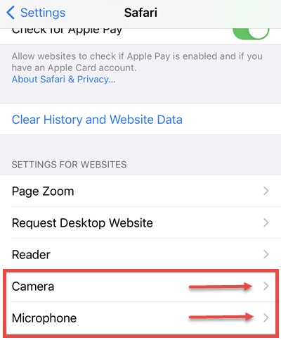 3. Make sure Camera and Microphone are both set to "Allow".