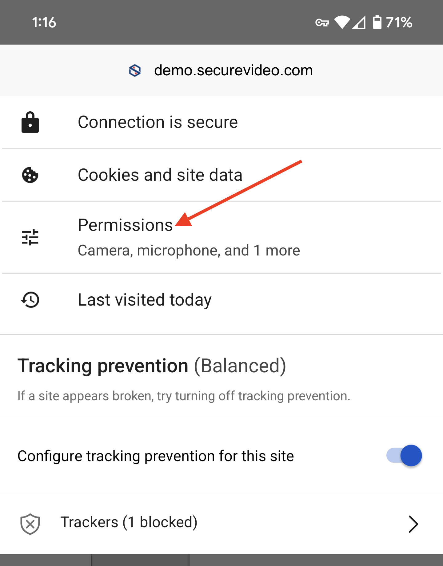 3. On the next page, tap on "Site permissions" (near the bottom).