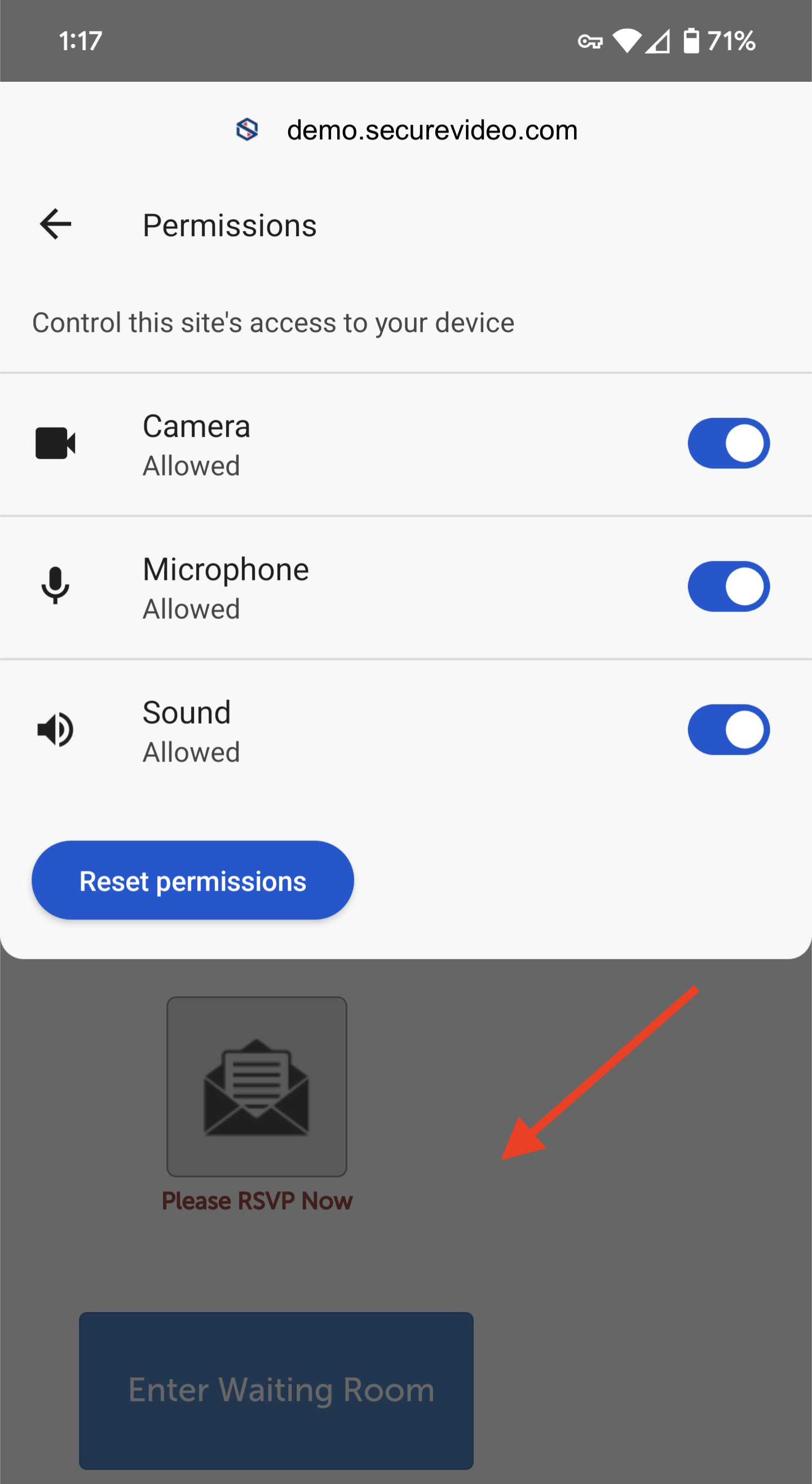 11. Enter the session again. When prompted for camera/microphone permissions, tap the box next to "Remember decision for this site" and click "Allow".