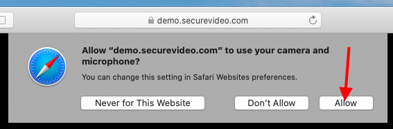 7. If this will be the first time you are connecting (or you have not previously saved permission), you will be prompted to give permission for One-Click to access your camera and microphone.