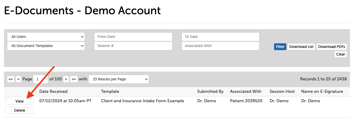 2. Click "View" on a completed E-Document